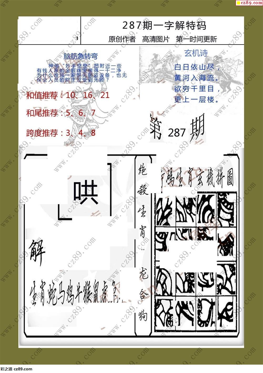 25年287期一字解特码福彩3d彩报