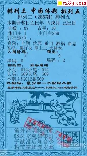 2025286期排列三 萌娃飞胆图
