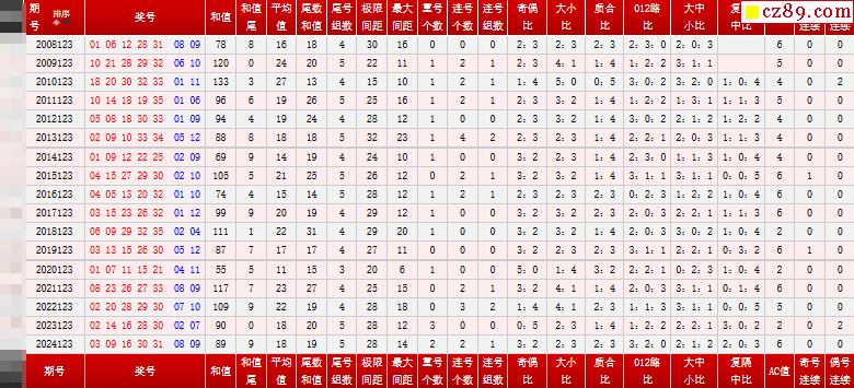 > 123期大乐透历史同期对比图